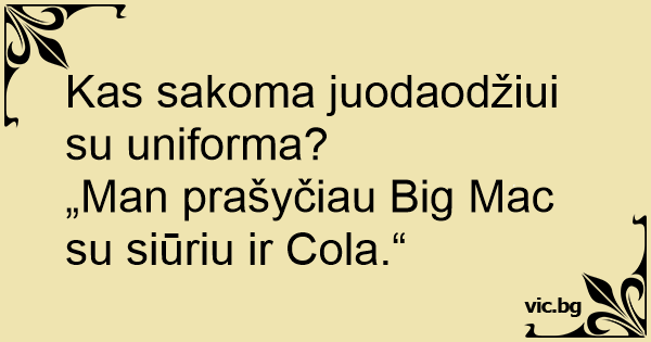 „Man prašyčiau Big Mac su siūriu ir Cola.“