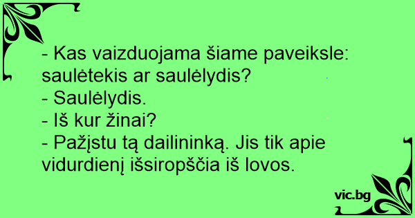 - Pažįstu tą dailininką. Jis tik apie vidurdienį išsiropščia iš lovos.