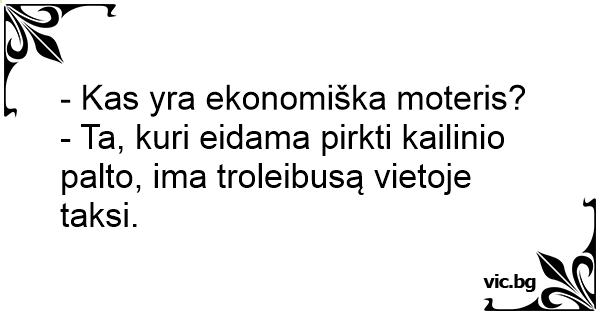 - Ta, kuri eidama pirkti kailinio palto, ima troleibusą vietoje taksi.