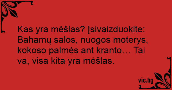 Kas yra mėšlas? Įsivaizduokite: Bahamų salos, nuogos moterys, kokoso palmės ant kranto… Tai va, visa kita yra mėšlas.