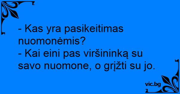 - Kai eini pas viršininką su savo nuomone, o grįžti su jo.