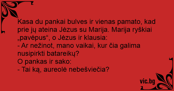 Kasa du pankai bulves ir vienas pamato, kad prie jų ateina Jėzus su Marija. Marija ryškiai „pavėpus“, o Jėzus ir klausia: