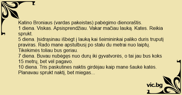 Katino Broniaus (vardas pakeistas) pabėgimo dienoraštis.