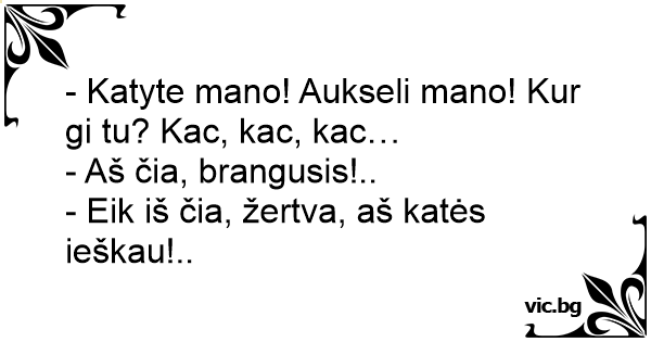 - Katyte mano! Aukseli mano! Kur gi tu? Kac, kac, kac…