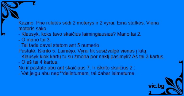 Pastatė. Iškrito 5. Laimėjo. Vyrai tik susižvalgė vienas į kitą: