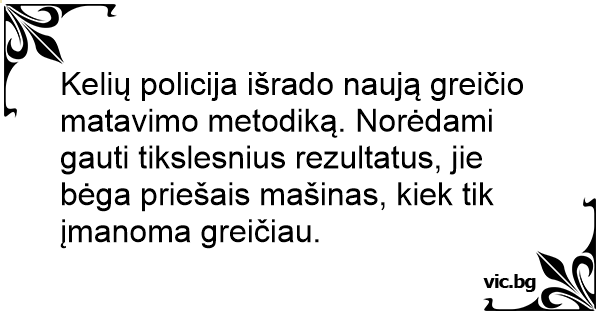 Kelių policija išrado naują greičio matavimo metodiką. Norėdami gauti tikslesnius rezultatus, jie bėga priešais mašinas, kiek tik įmanoma greičiau.