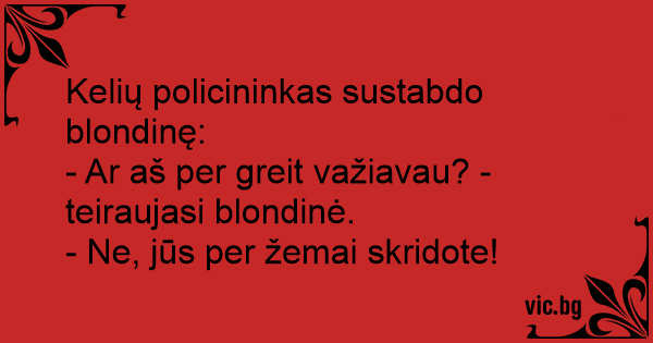 - Ar aš per greit važiavau? - teiraujasi blondinė.