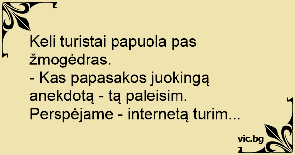 - Kas papasakos juokingą anekdotą - tą paleisim. Perspėjame - internetą turim...