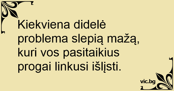 Kiekviena didelė problema slepią mažą, kuri vos pasitaikius progai linkusi išlįsti.