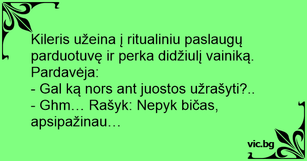 Kileris užeina į ritualiniu paslaugų parduotuvę ir perka didžiulį vainiką. Pardavėja:
