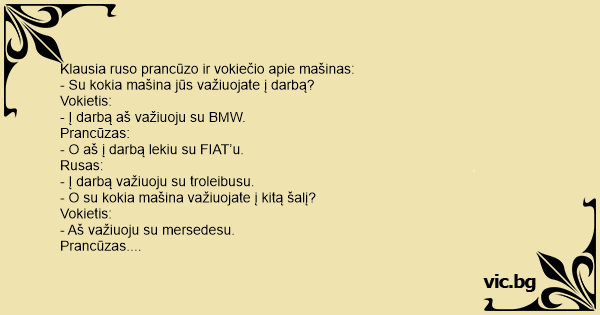 Klausia ruso prancūzo ir vokiečio apie mašinas: