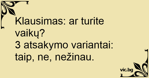 3 atsakymo variantai: taip, ne, nežinau.