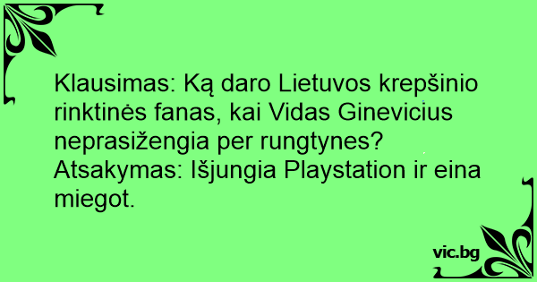 - Ką veikia lietuviai laimėję Pasaulio futbolo čempionatą? - Išjungia savo Playstation…