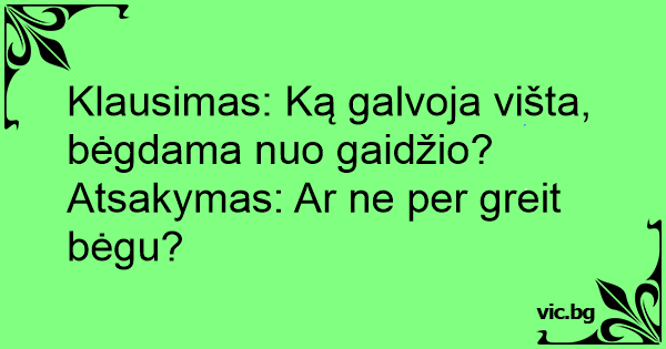 Klausimas: Ką galvoja višta, bėgdama nuo gaidžio?