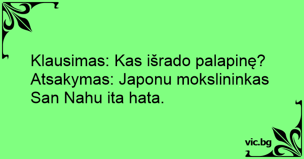Atsakymas: Japonu mokslininkas San Nahu ita hata.