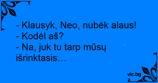 - Klausyk, Neo, nubėk alaus!