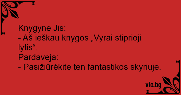 - Aš ieškau knygos „Vyrai stiprioji lytis“.