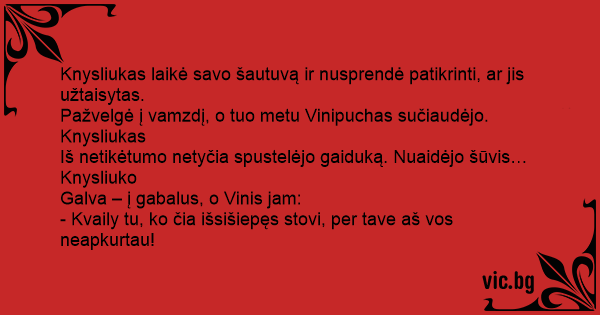 Iš netikėtumo netyčia spustelėjo gaiduką. Nuaidėjo šūvis… Knysliuko