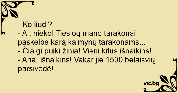 - Ai, nieko! Tiesiog mano tarakonai paskelbė karą kaimynų tarakonams...
