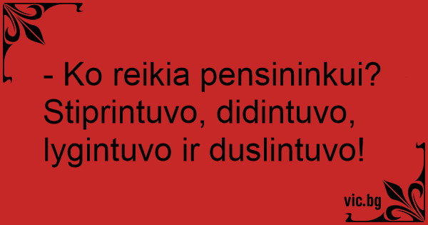 - Ko reikia pensininkui? Stiprintuvo, didintuvo, lygintuvo ir duslintuvo!