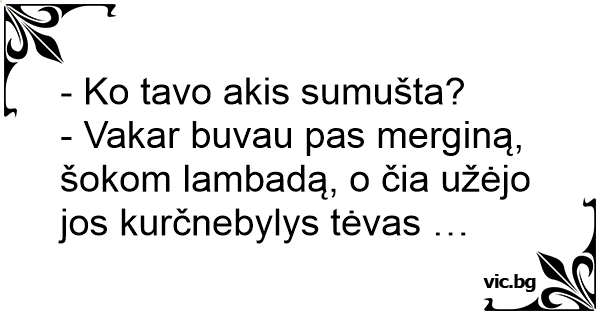 - Vakar buvau pas merginą, šokom lambadą, o čia užėjo jos kurčnebylys tėvas …