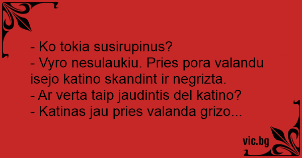 - Vyro nesulaukiu. Pries pora valandu isejo katino skandint ir negrizta.