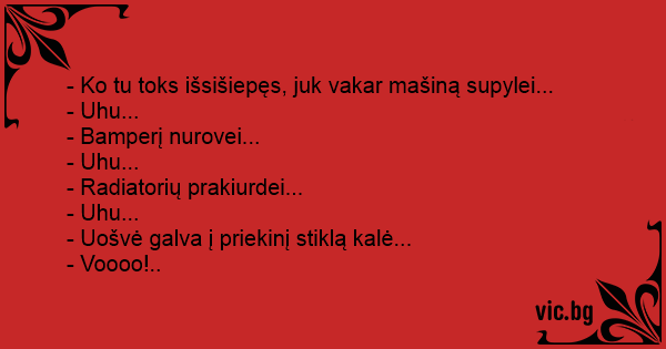 - Ko tu toks išsišiepęs, juk vakar mašiną supylei...