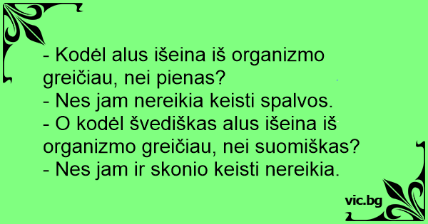 - O kodėl švediškas alus išeina iš organizmo greičiau, nei suomiškas?