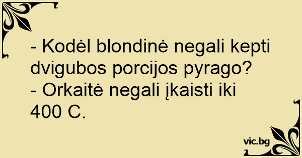 - Kodėl blondinė negali kepti dvigubos porcijos pyrago?