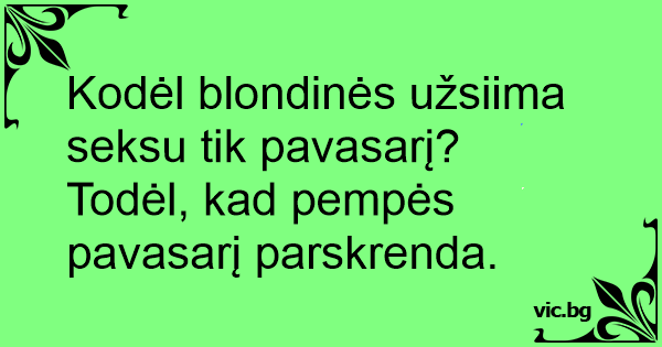 Kodėl blondinės užsiima seksu tik pavasarį? Todėl, kad pempės pavasarį parskrenda.