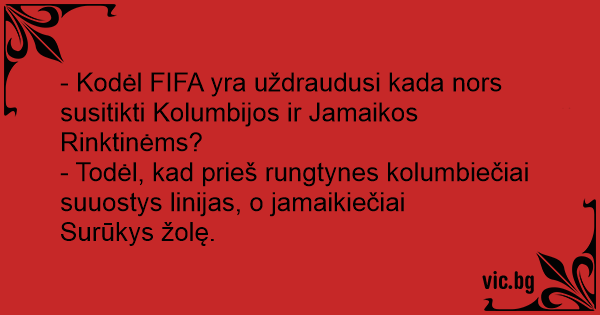 - Kodėl FIFA yra uždraudusi kada nors susitikti Kolumbijos ir Jamaikos