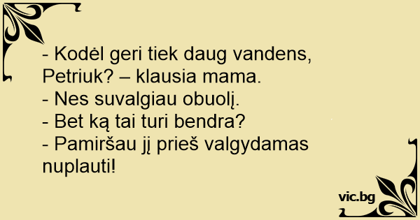 - Kodėl geri tiek daug vandens, Petriuk? – klausia mama.