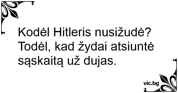 Kodėl Hitleris nusižudė? Todėl, kad žydai atsiuntė sąskaitą už dujas.