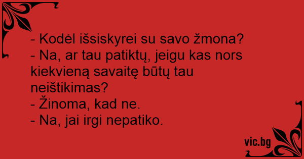 - Kodėl išsiskyrei su savo žmona?