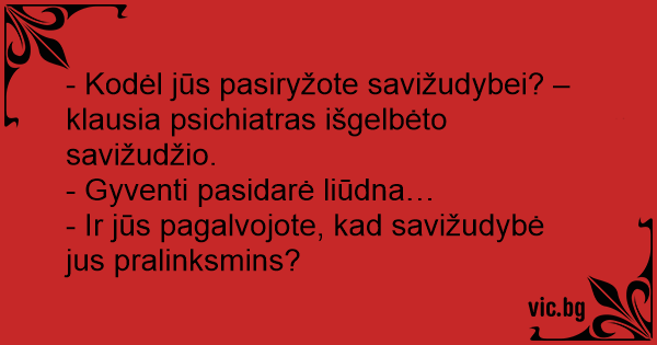 - Kodėl jūs pasiryžote savižudybei? – klausia psichiatras išgelbėto savižudžio.