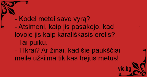 - Atsimeni, kaip jis pasakojo, kad lovoje jis kaip karališkasis erelis?