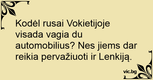 Kodėl rusai Vokietijoje visada vagia du automobilius? Nes jiems dar reikia pervažiuoti ir Lenkiją.