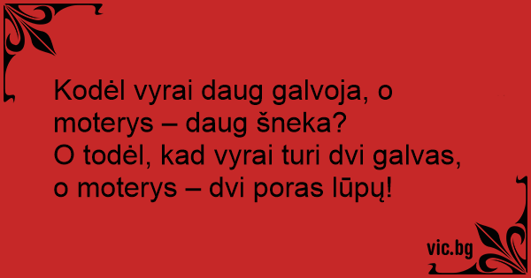 O todėl, kad vyrai turi dvi galvas, o moterys – dvi poras lūpų!