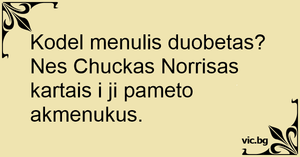 Kodel menulis duobetas? Nes Chuckas Norrisas kartais i ji pameto akmenukus.