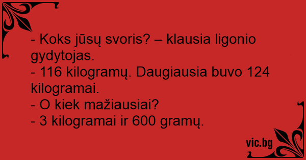 - Koks jūsų svoris? – klausia ligonio gydytojas.
