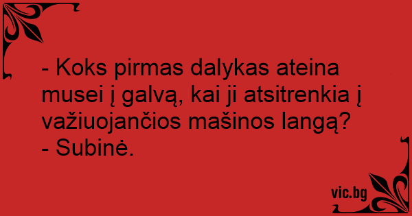 - Koks pirmas dalykas ateina musei į galvą, kai ji atsitrenkia į važiuojančios mašinos langą?
