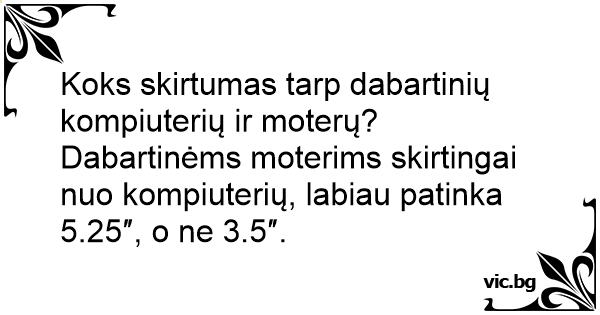Koks skirtumas tarp dabartinių kompiuterių ir moterų? Dabartinėms moterims skirtingai nuo kompiuterių, labiau patinka 5.25″, o ne 3.5″.