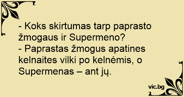 - Koks skirtumas tarp paprasto žmogaus ir Supermeno?