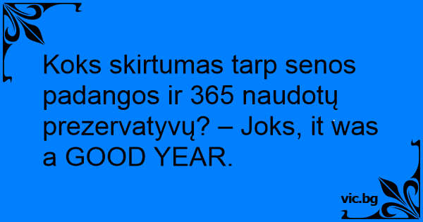 Koks skirtumas tarp senos padangos ir 365 naudotų prezervatyvų? – Joks, it was a GOOD YEAR.