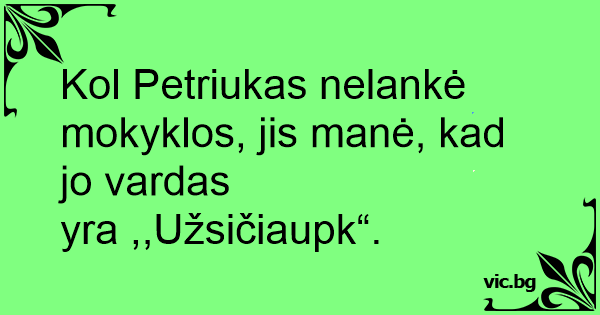 Kol Petriukas nelankė mokyklos, jis manė, kad jo vardas yra ,,Užsičiaupk“.