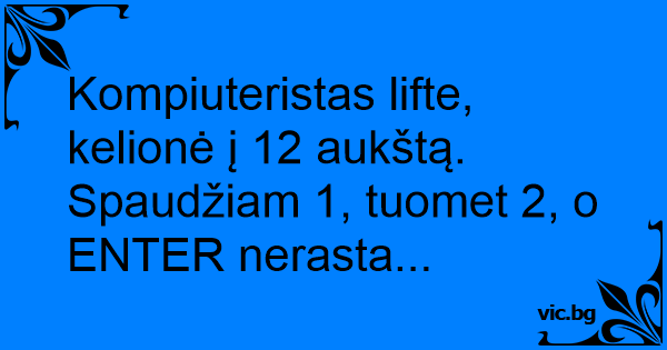 Kompiuteristas lifte, kelionė į 12 aukštą. Spaudžiam 1, tuomet 2, o ENTER nerasta...