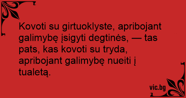 Kovoti su girtuoklyste, apribojant galimybę įsigyti degtinės, — tas pats, kas kovoti su tryda, apribojant galimybę nueiti į tualetą.