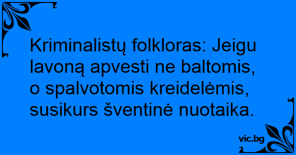 Kriminalistų folkloras: Jeigu lavoną apvesti ne baltomis, o spalvotomis kreidelėmis, susikurs šventinė nuotaika.