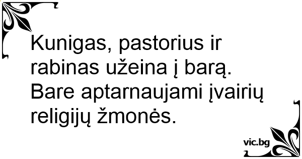 Kunigas, pastorius ir rabinas užeina į barą. Bare aptarnaujami įvairių religijų žmonės.