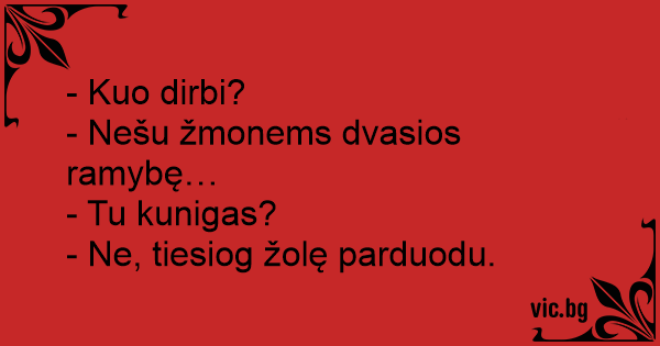 - Kuo dirbi? - Nešu žmonems...